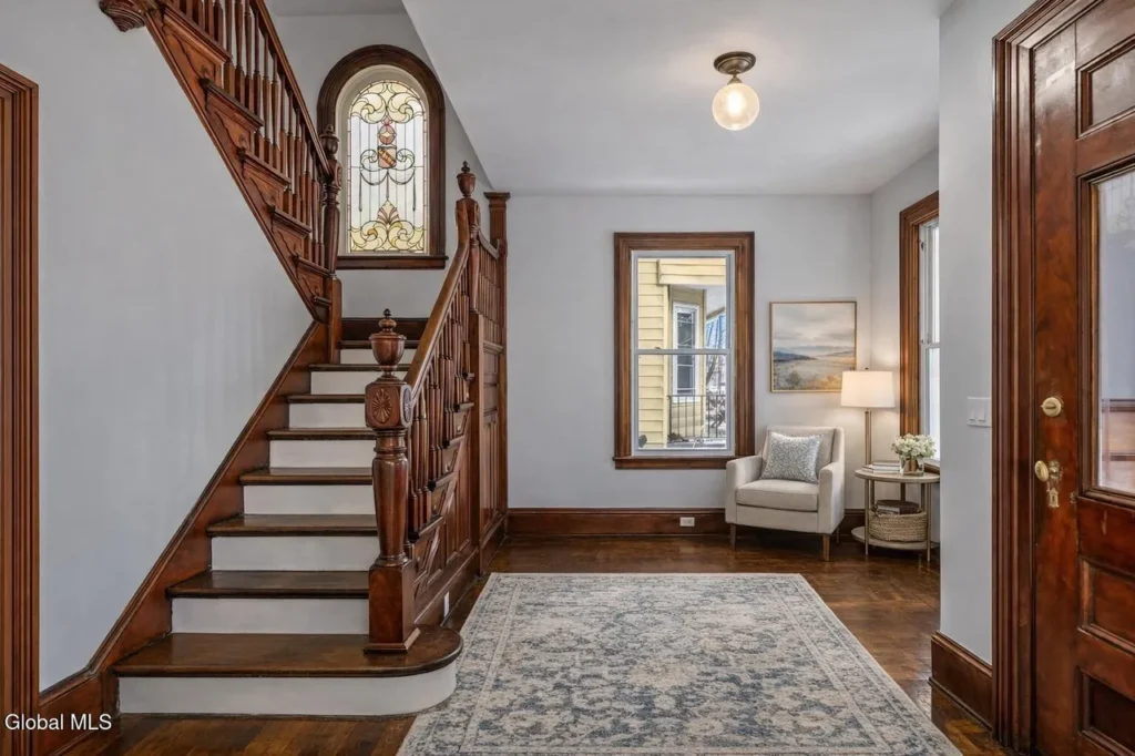 From the moment you enter, the beautifully preserved original wood staircase sets the tone, highlighting the craftsmanship and character that define this home.