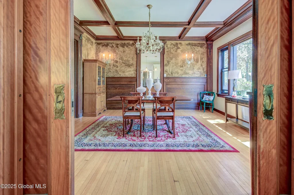 There are details here you simply won’t find anywhere else. The dining room is home to a magnificent, handmade tapestry that has hung there since 1915—a priceless piece of the home’s soul.