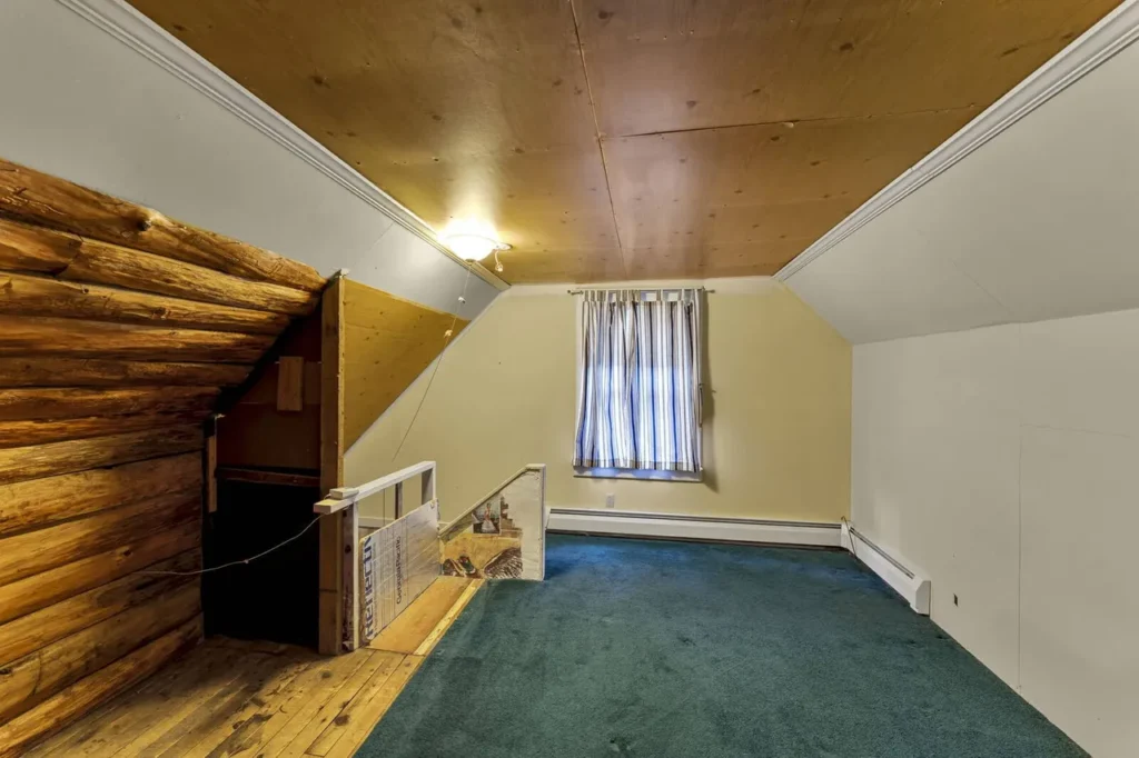 🪜 Stairway to a full attic with floored storage, half bath & space for a den or studio