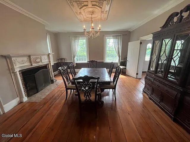 From there, you step back in time. You can feel the centuries underfoot on the original wide plank hardwood floors that flow through the elegant formal dining room and cozy living room, each with its own historic fireplace.