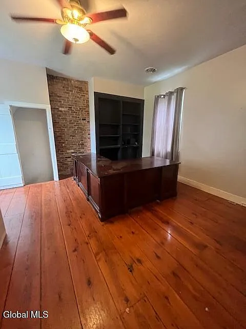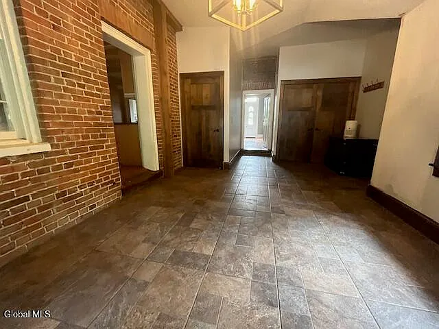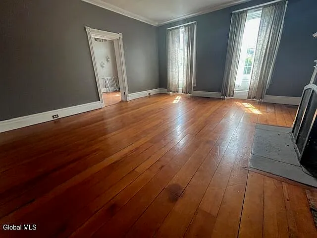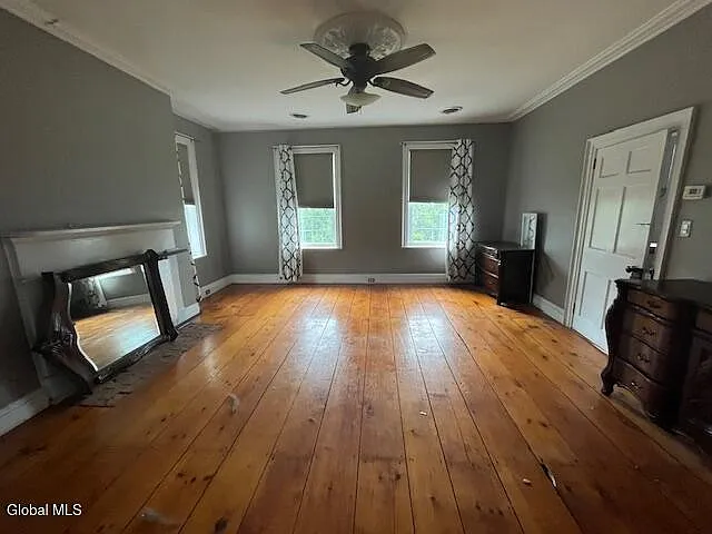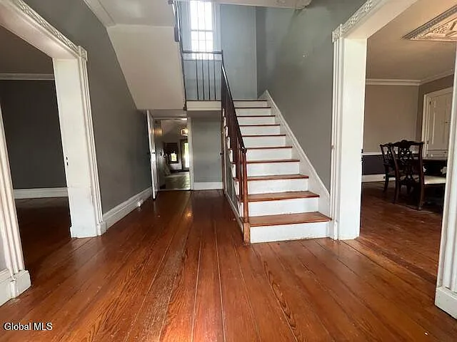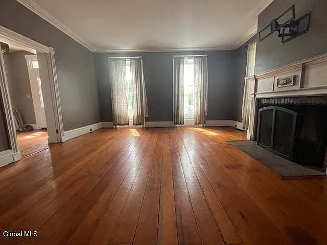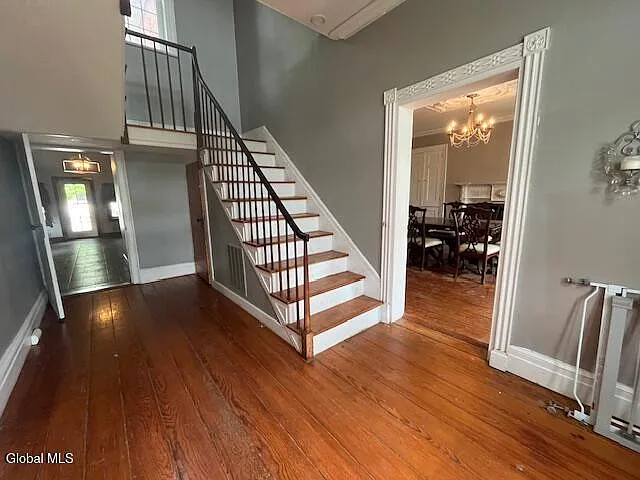 Details like the towering ceilings, two separate staircases, and huge windows speak to the quality and grace of its 18th-century construction.