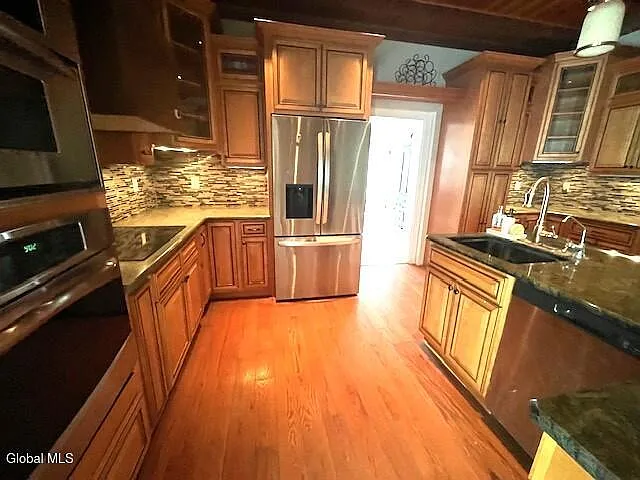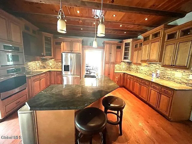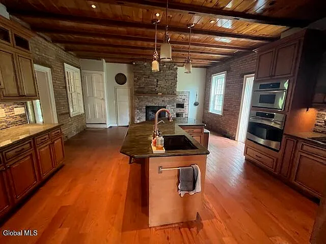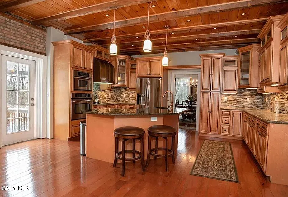 This is a home that beautifully bridges the centuries. The heart of the house is the magnificent eat-in kitchen, a modern reinterpretation of the classic colonial keeping room, anchored by a floor-to-ceiling stone fireplace. It’s a space that honors the home’s history as a place of gathering while offering every modern convenience.