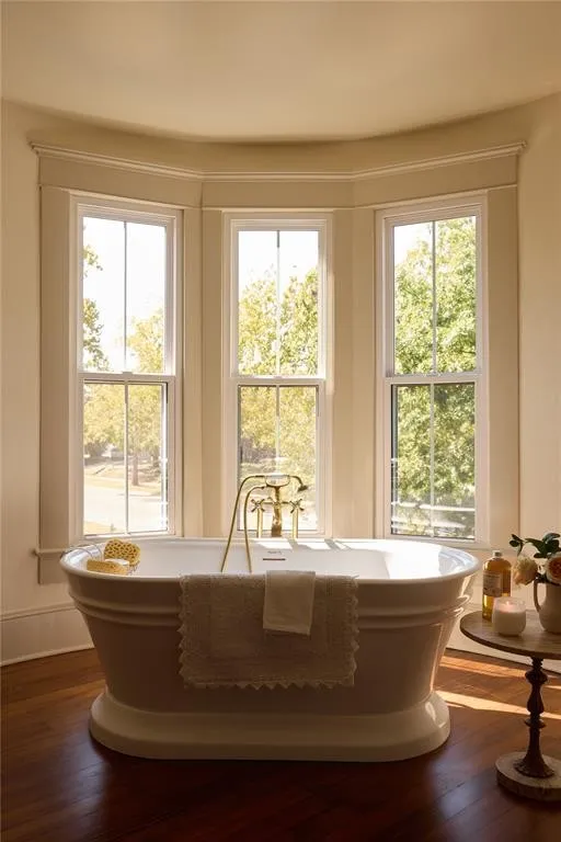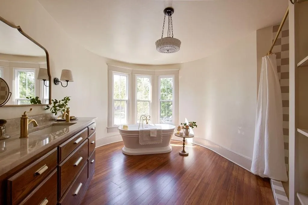 Upstairs, the second floor is bathed in natural light thanks to large, newly installed windows. Four luxurious bedrooms provide serene spaces to unwind, while the primary bathroom is a true sanctuary. Relax in the soaking tub nestled in the turret, where you’ll be treated to panoramic views that make every moment magical.