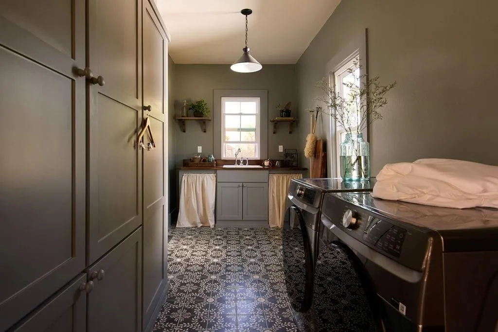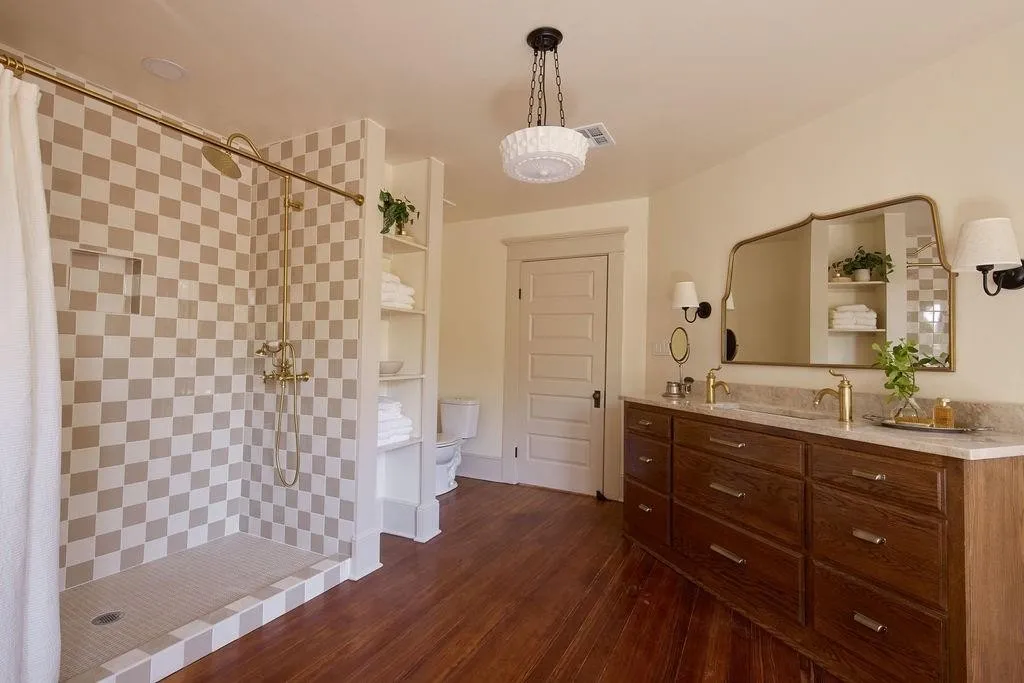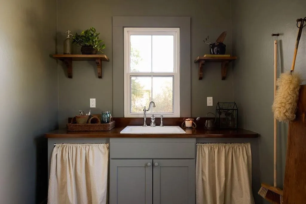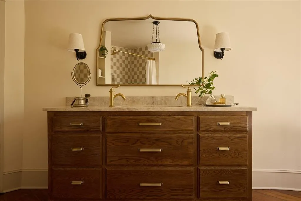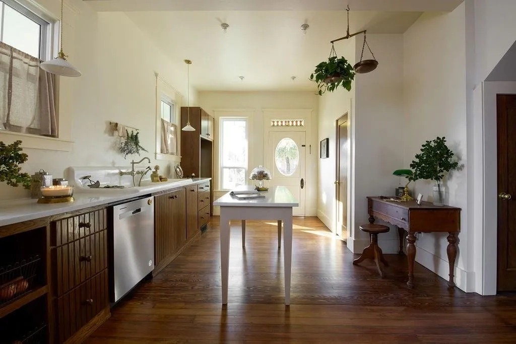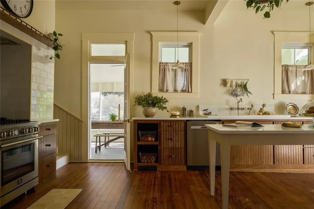 The library is a cozy retreat, bathed in rich, deep hues and featuring floor-to-ceiling bookshelves perfect for displaying your literary treasures. Meanwhile, the kitchen is a work of art, seamlessly marrying old-world charm with modern functionality. An oversized, refurbished cast-iron sink steals the show, surrounded by curated heirloom kitchenware and thoughtful design touches that create a sense of home.