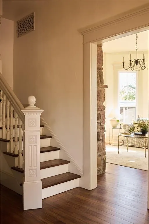 The exterior is a vision of classic Victorian allure, with ornate gables, intricate woodwork, and a wraparound porch that invites you to slow down and savor life’s simple pleasures. The screened-in back porch offers a serene space to unwind while overlooking the landscaped gardens, mature trees, and historic stone fencing that provide privacy and beauty.