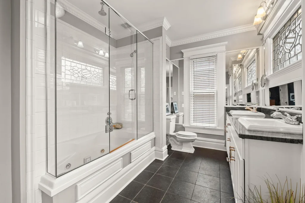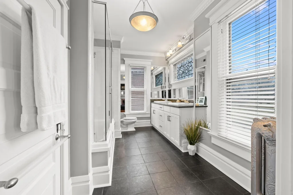 Stepping inside, one can’t help but admire the harmonious blend of traditional elements paired with contemporary finishes. The spacious living areas feature restored hardwood floors that flow seamlessly into modern, light-filled spaces. Thoughtful renovations have maintained the home’s historic charm while incorporating modern conveniences, ensuring comfort for today’s lifestyles. The kitchen, the heart of any home, showcases sleek cabinetry, high-end appliances, and a functional layout, making it perfect for both everyday cooking and entertaining guests.