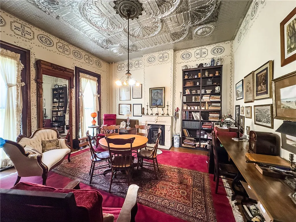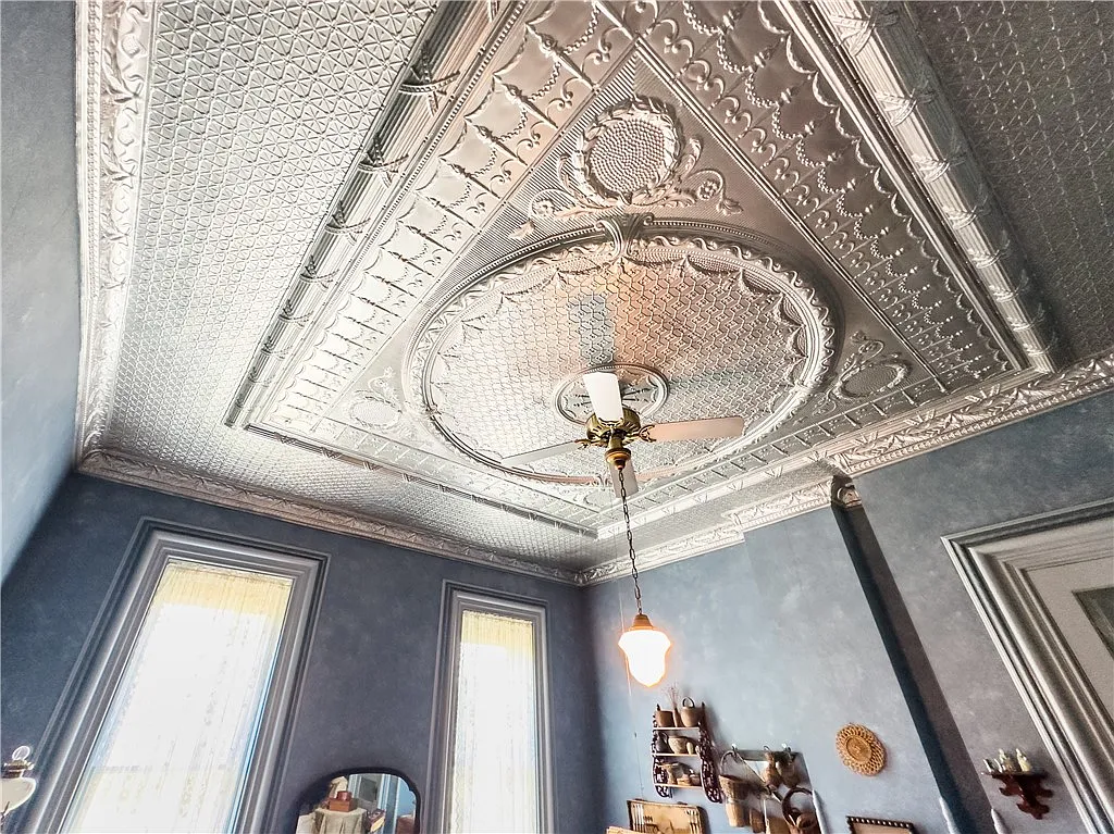 Step into a piece of history with this stunning Italiante Victorian style home built in 1879 by local merchant, D. D. Doll. Throughout the home is original woodwork, baseboards, hardwood floors, pocket doors, four dignified fireplaces, stained glass doors and windows, Cranberry Glass Chandelier, and antique lighting fixtures.