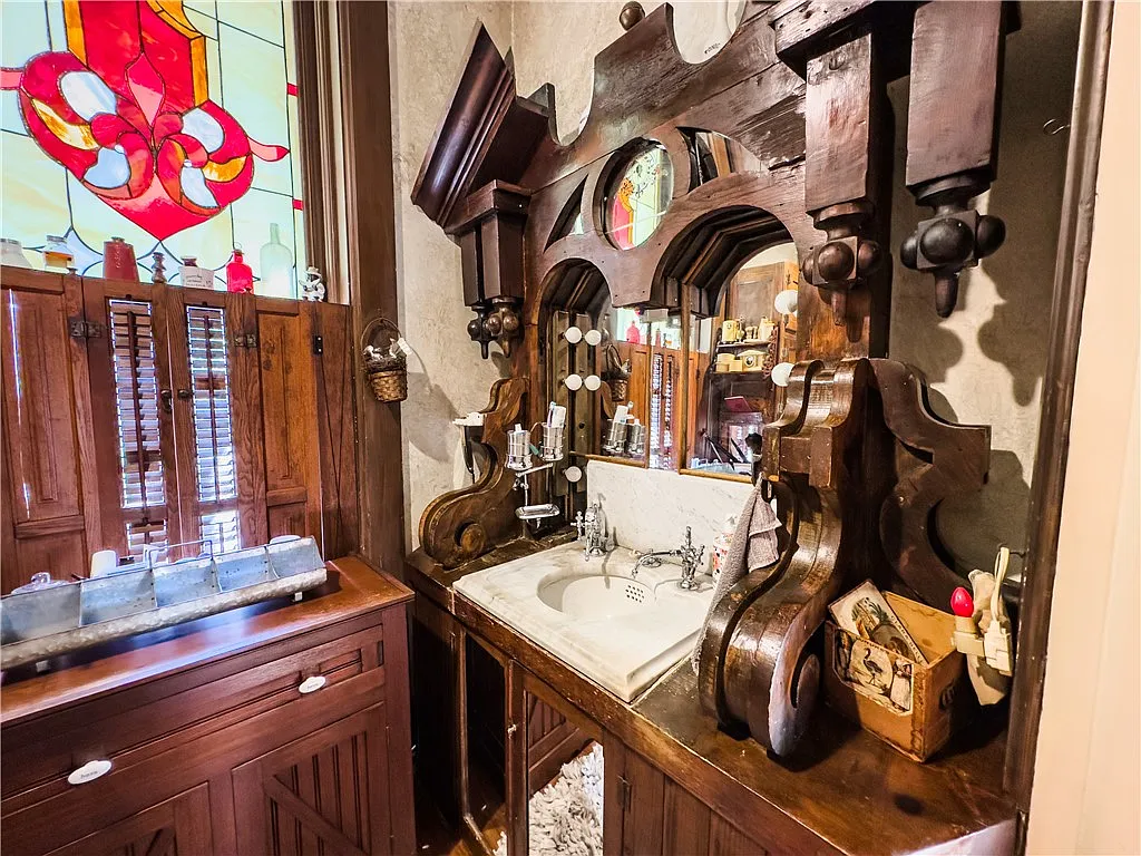 The upstairs includes a full bathroom with marble sinks and a clawfoot bathtub. On the .6 acre lot is a 2 car garage with a bathroom and covered porch. TOO MUCH TO LIST!