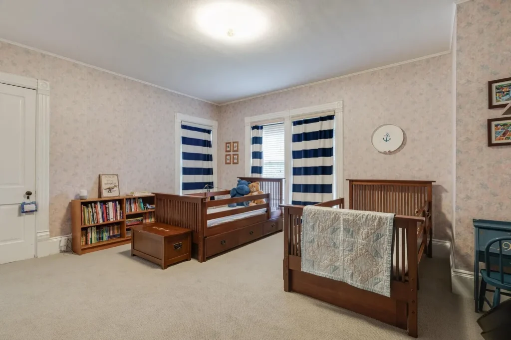 Exterior Protection: A new roof and a fresh professional paint job preserve the intricate wood siding and shingles.