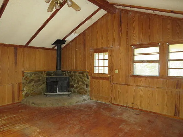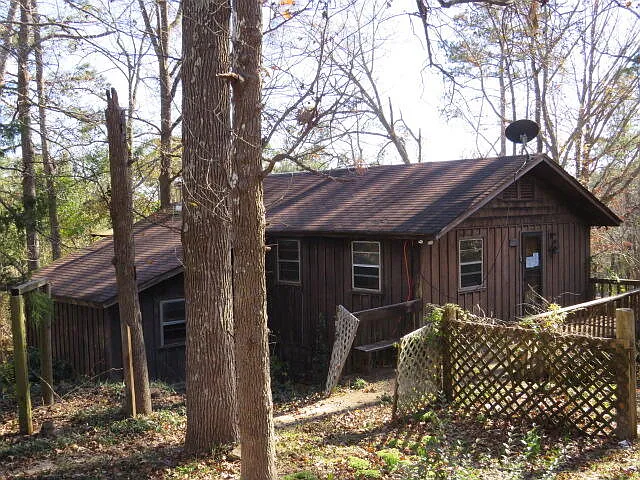 This wood cabin is the perfect opportunity for someone looking to create their dream retreat. Priced at just $14,000, this 3-bedroom, 2-bathroom home offers 1,460 sqft of living space and sits on a 0.38-acre wooded lot, minutes from the lake.